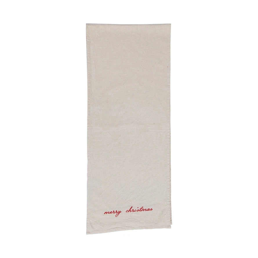 72″ Cotton Table Runner With Embroidery “Merry Christmas”, Cream & Red