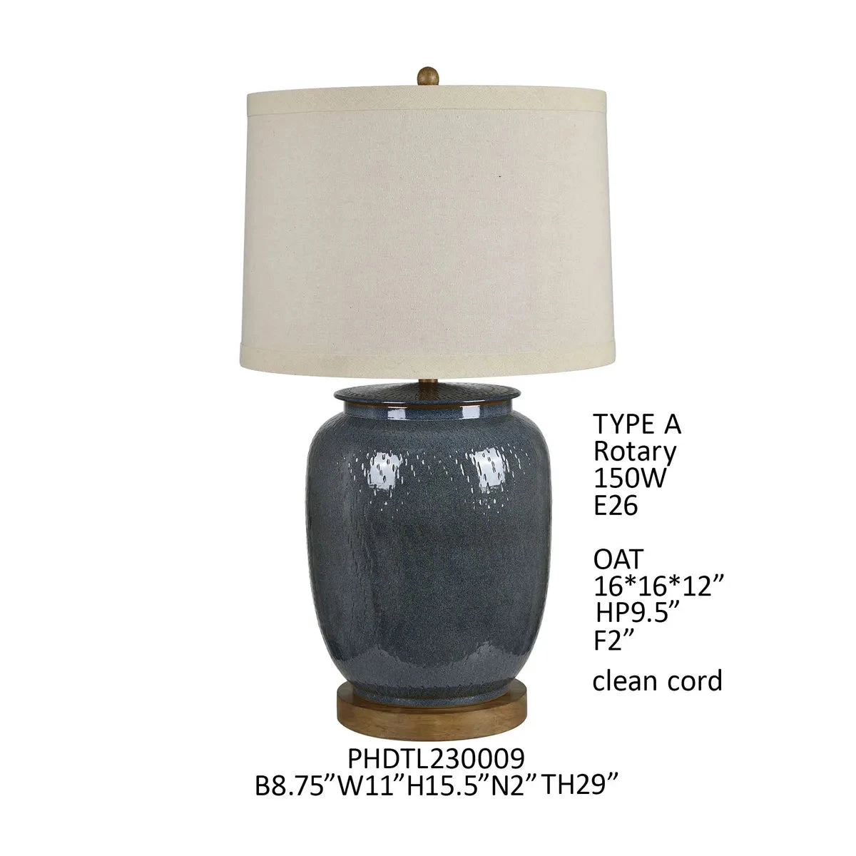 The Blue Shoals Lamp has a pottery base finished with a glaze reflective as shallow water. This hearty proportioned lamp makes a statement wherever you place it.