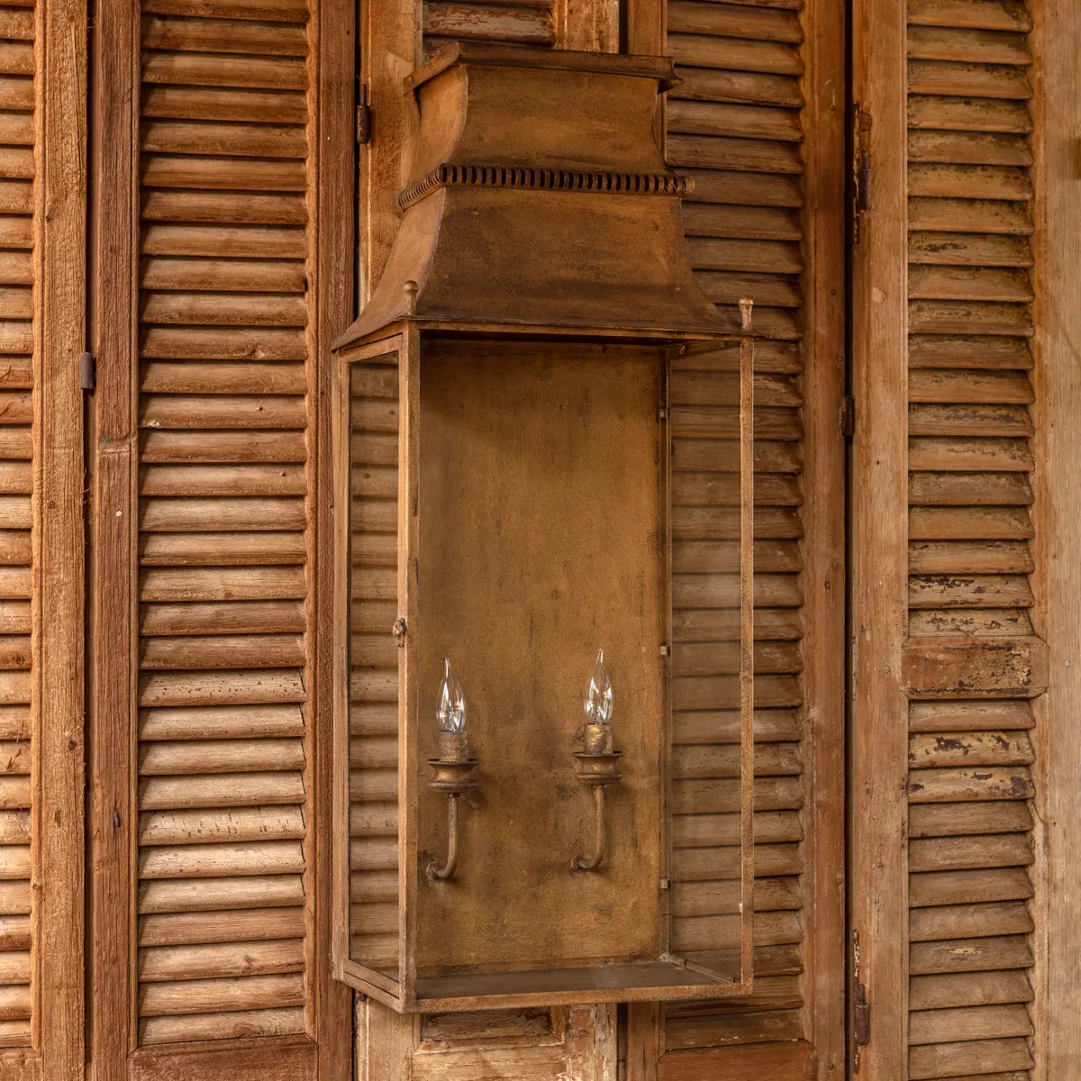 Our Country Club wall lantern has a beautiful aged gold finish with room above the bulbs to showcase a favorite plate if desired. By far our best selling light fixture this wall lantern would look great in any interior.