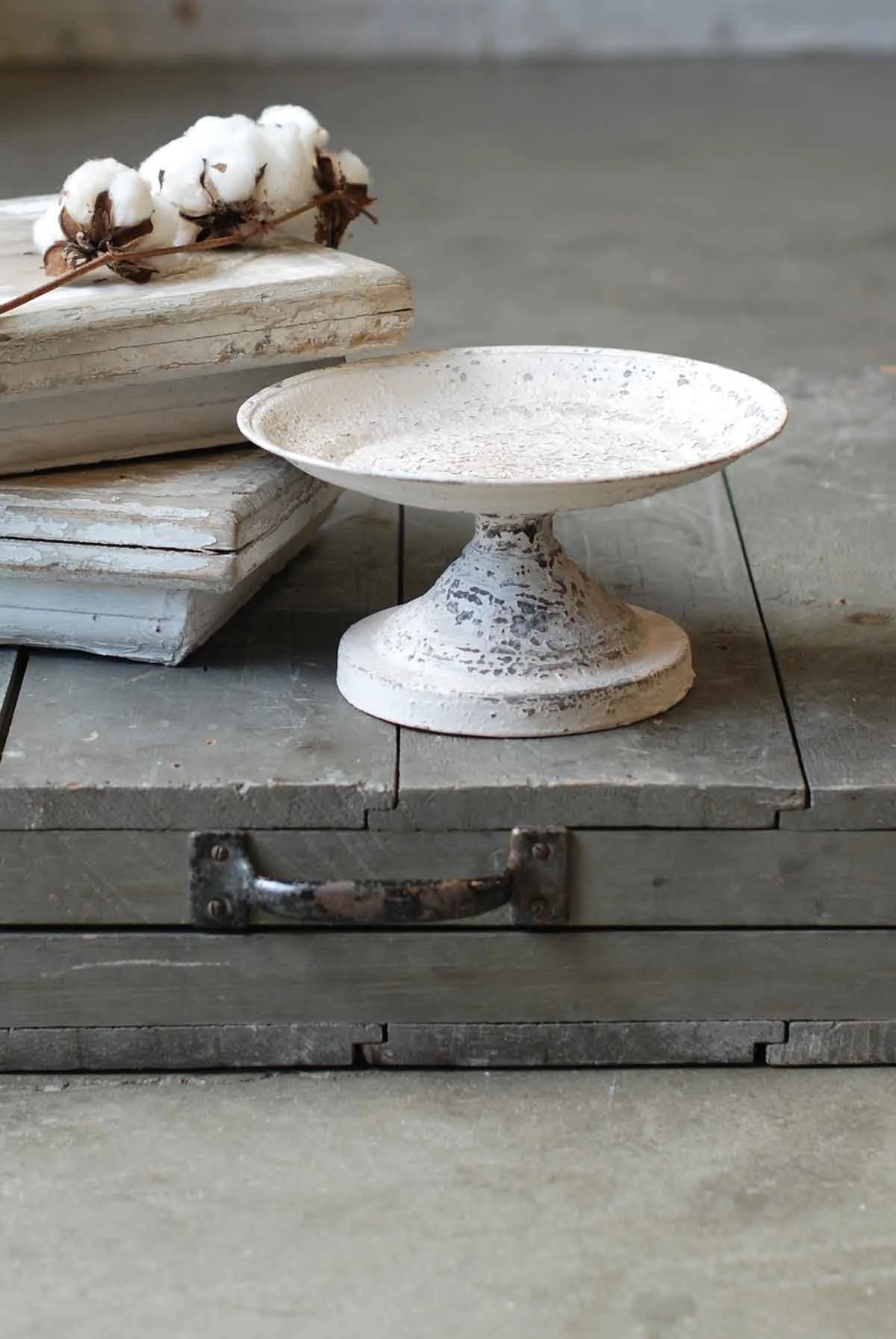 A lovey distressed pedestal plate that can be used in a multitude of ways!