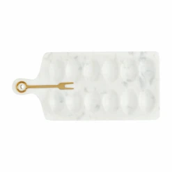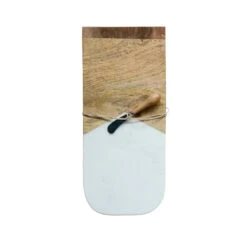 Marble Cutting Board With Handle & Leather Tie, Grey & White