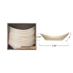 Wood Single Use Snack Boats In Kraft Box, Natural, Set Of 50