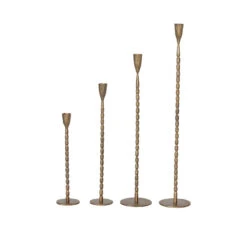 Hand-Forged Iron Taper Candle Holder With Bow, Antique Gold Finish, 3 Size Options