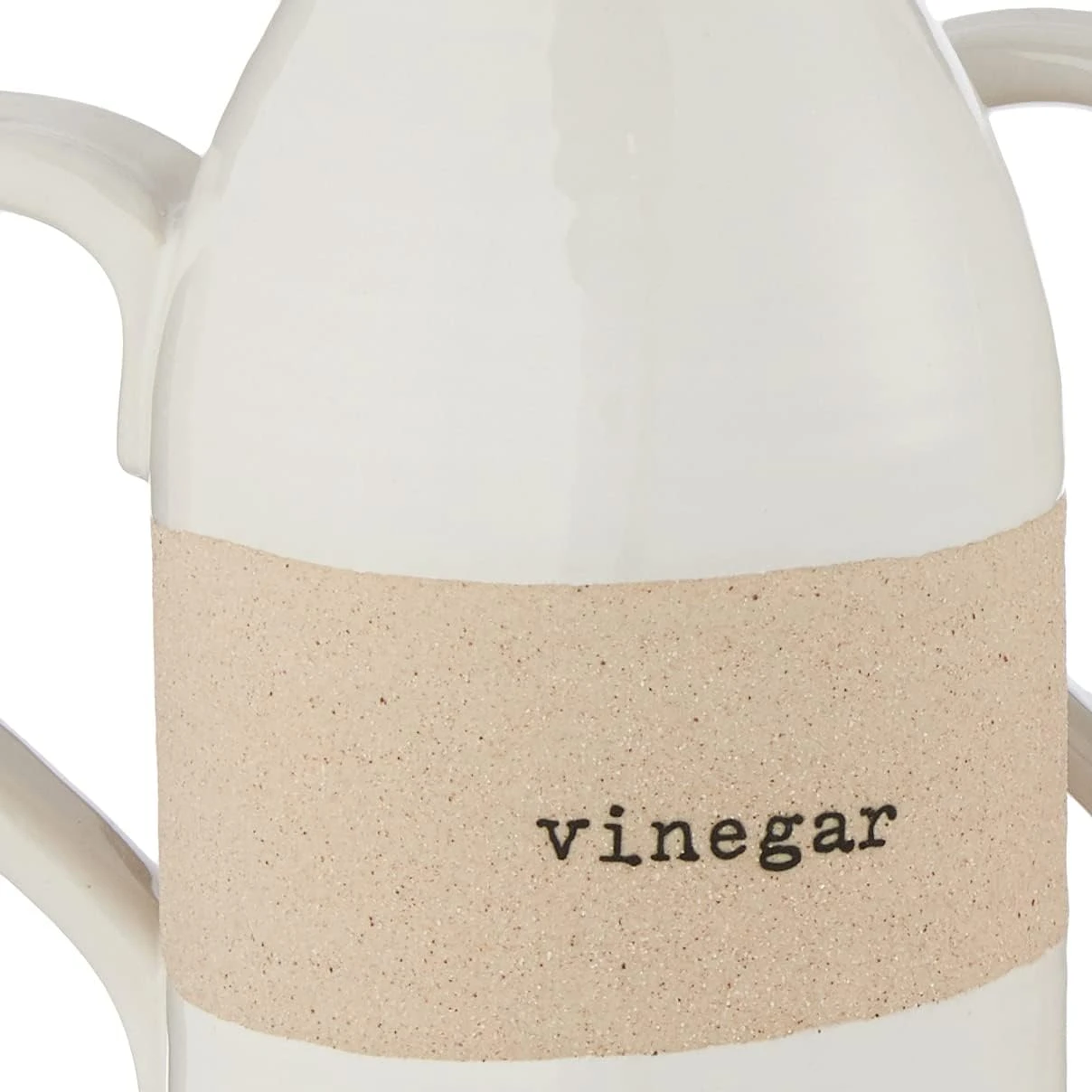 Our Oil and Vinegar decanter set is an essential for your kitchen. The 3-piece set comes with glazed and exposed stoneware oil and vinegar decanters. The decanters feature debossed identifiers that read oil and vinegar. The decanters feature side handles and cork stoppers.
