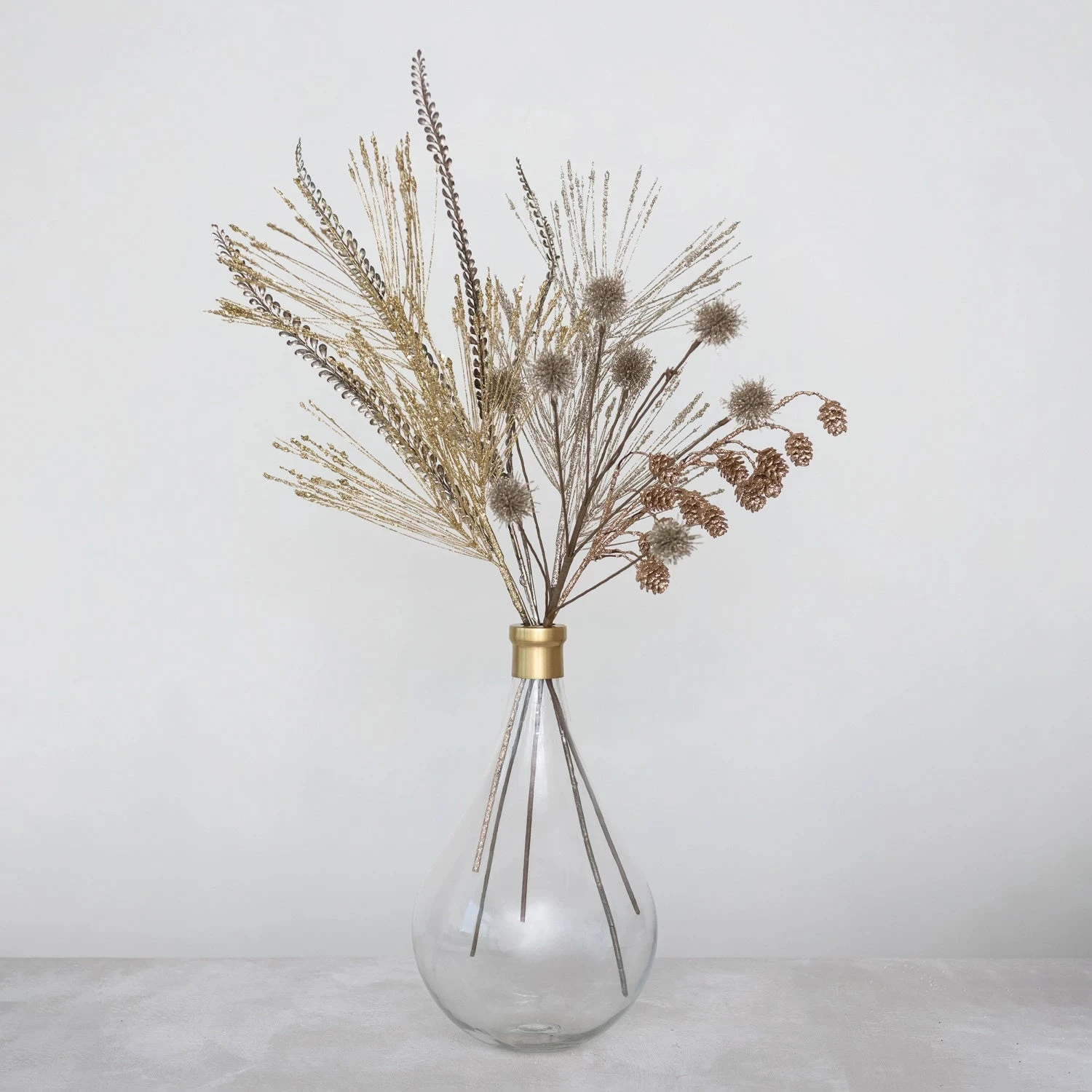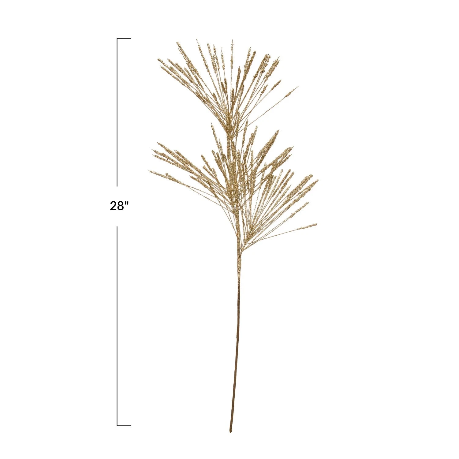 Faux Long Needle Pine Spray With Glitter, Champagne, 28″