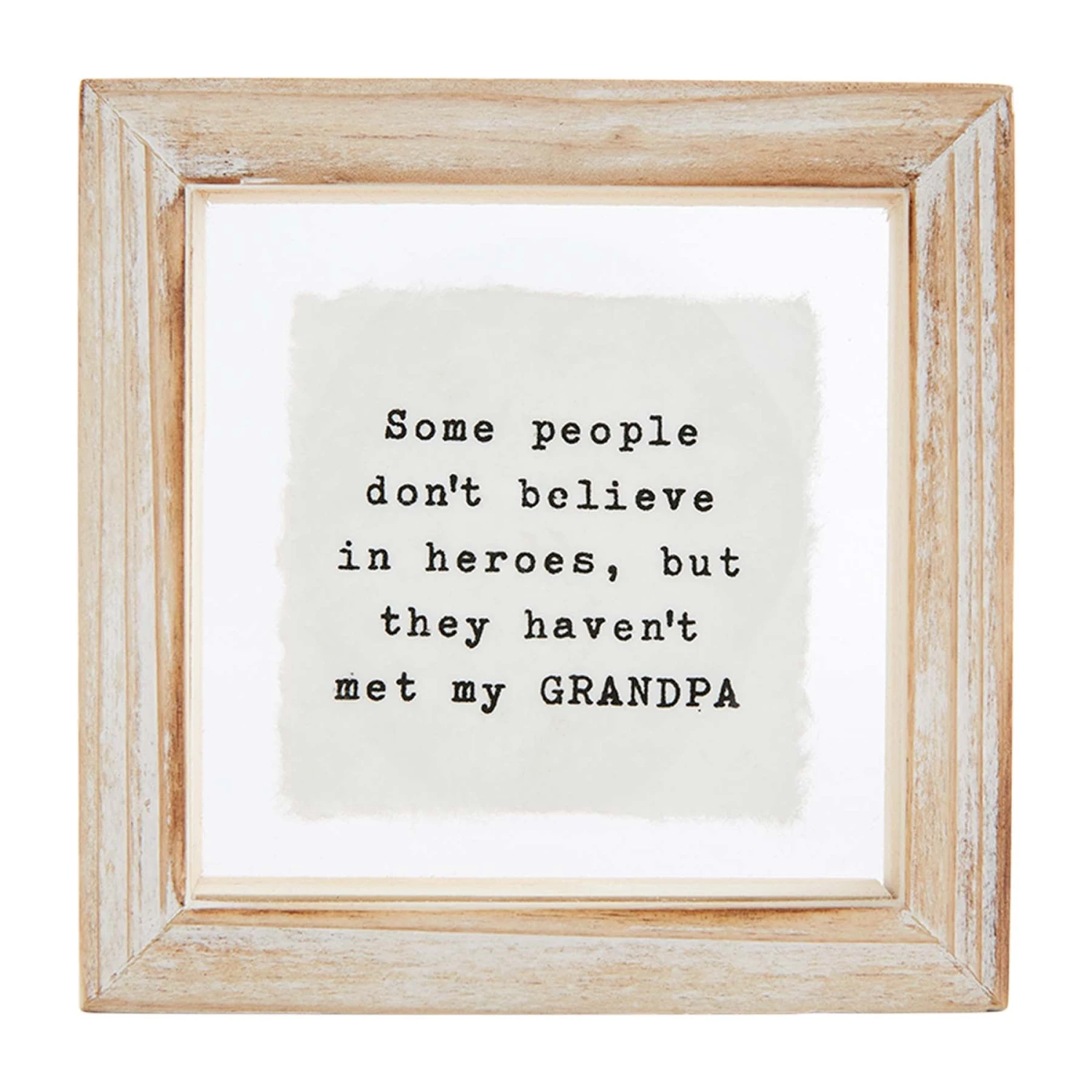 Pressed glass plaque features printed handmade parchment paper and wooden frame.