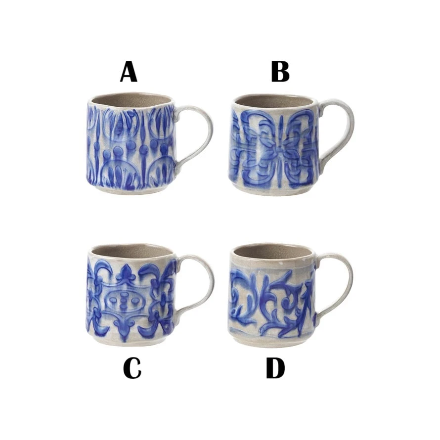 Hand-Painted Stoneware Mug With Blue & White Pattern, 4 Style Options