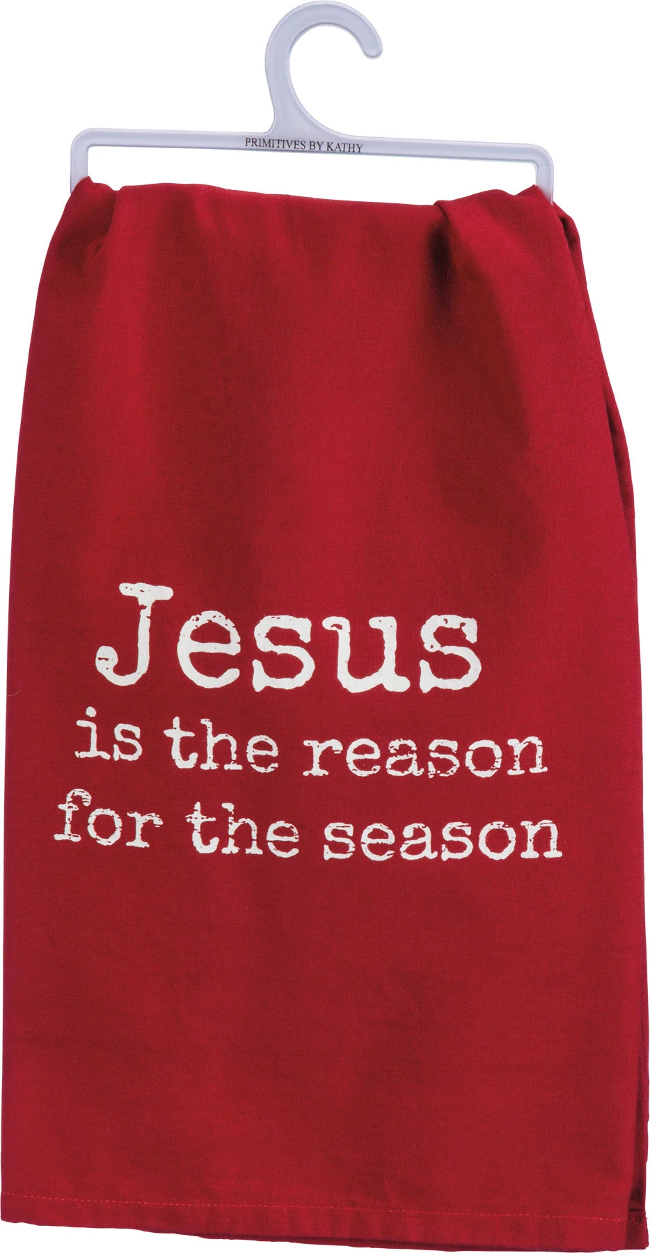 A cotton dish towel featuring a distressed “Jesus Is The Reason For The Season” sentiment.ย