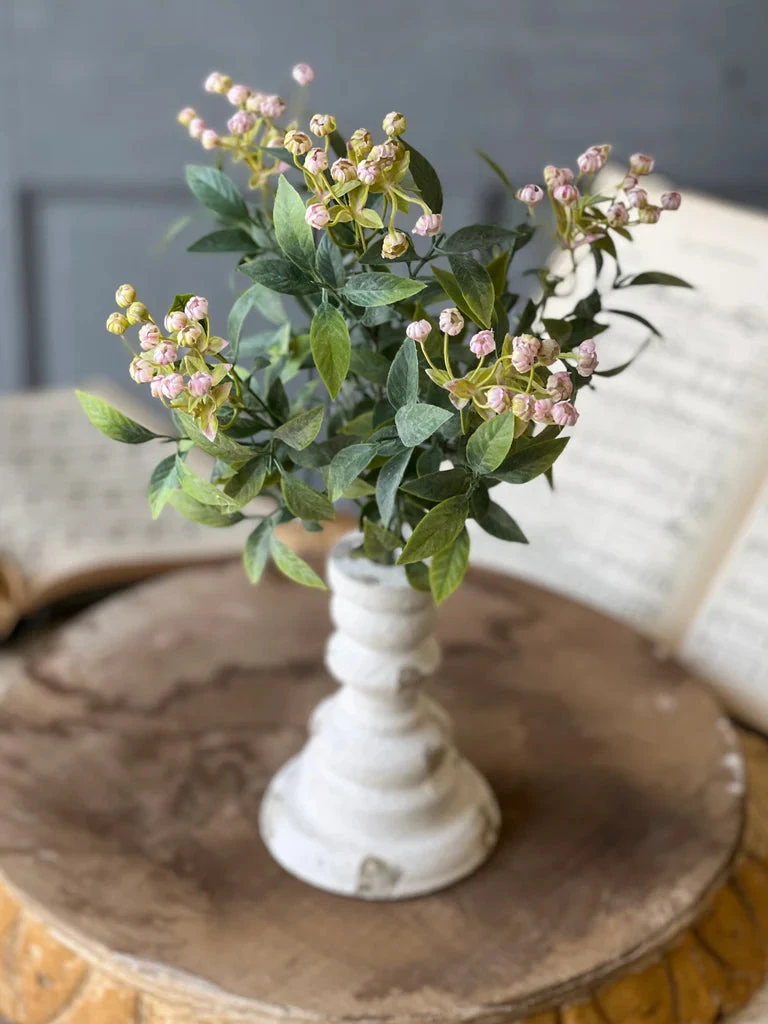 Sweet sprigs of baby’s breath are surrounded with tonal leaves with a light powdered finish to create a floral that is versatile and winsome. Â