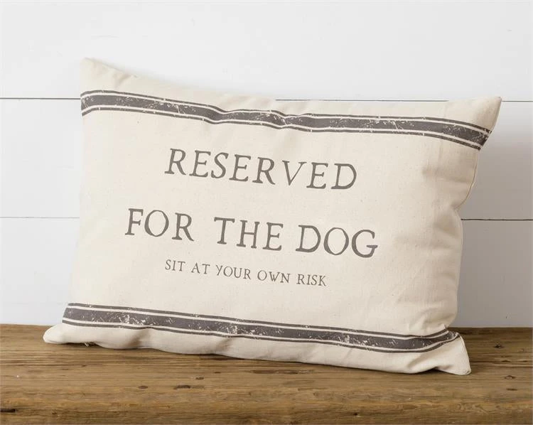 This pillow works for either the dog or cat pet owner. One side shows “Reserved For The Dog” – flip it over and the second side shows – “Reserved For The Cat”.