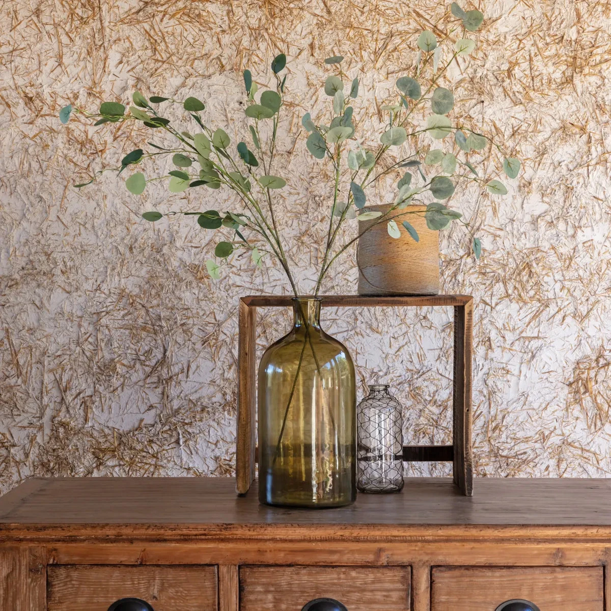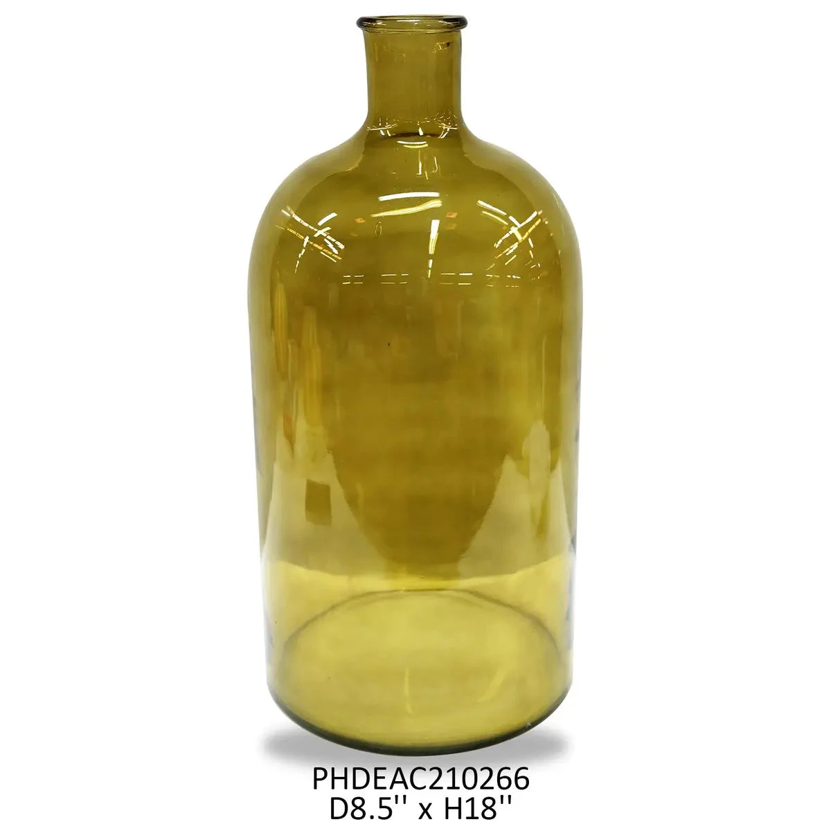 The shape and size of the Olive Green Spirits bottle is a unique piece that it can stand alone or be grouped with other shapes and sizes of bottles in olive green.