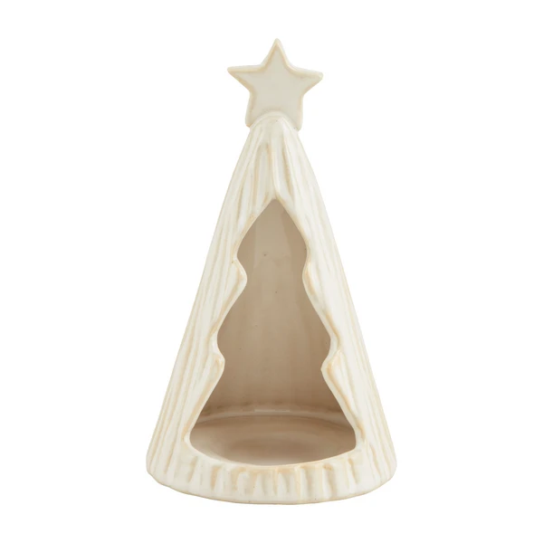 Crafted from milk glazed stoneware with antique wash and cut-out detailing