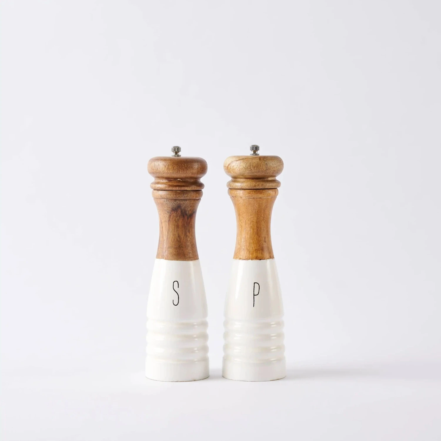 Two-Tone Wood & Enamel White-Dipped Salt & Pepper Mill Shaker Set By Mud Pie
