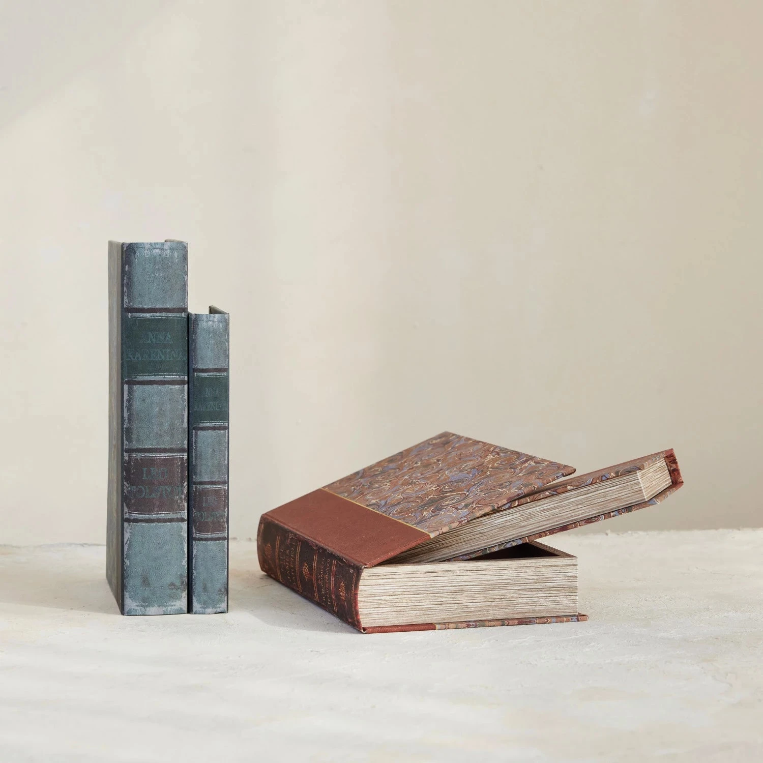 Vintage Reproduction MDF & Canvas Book Storage Box, Printed Marbled Design, 2 Size/Style Options